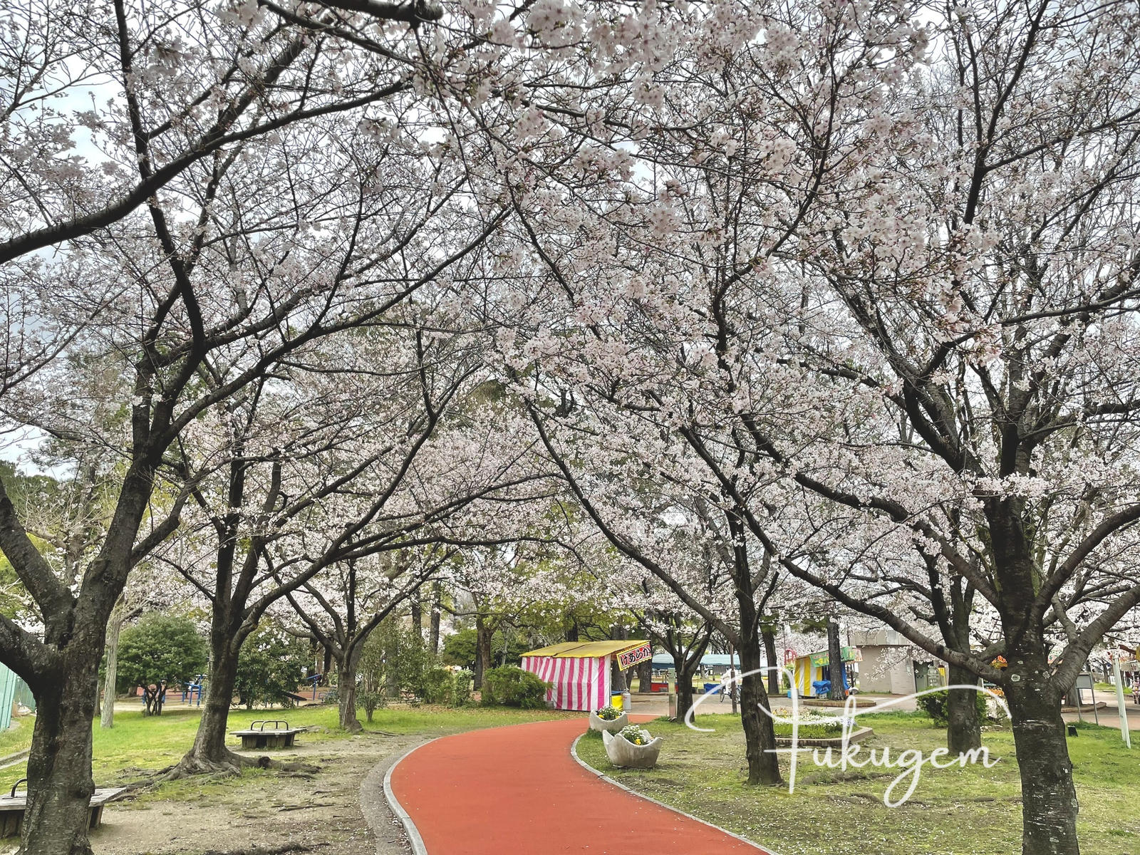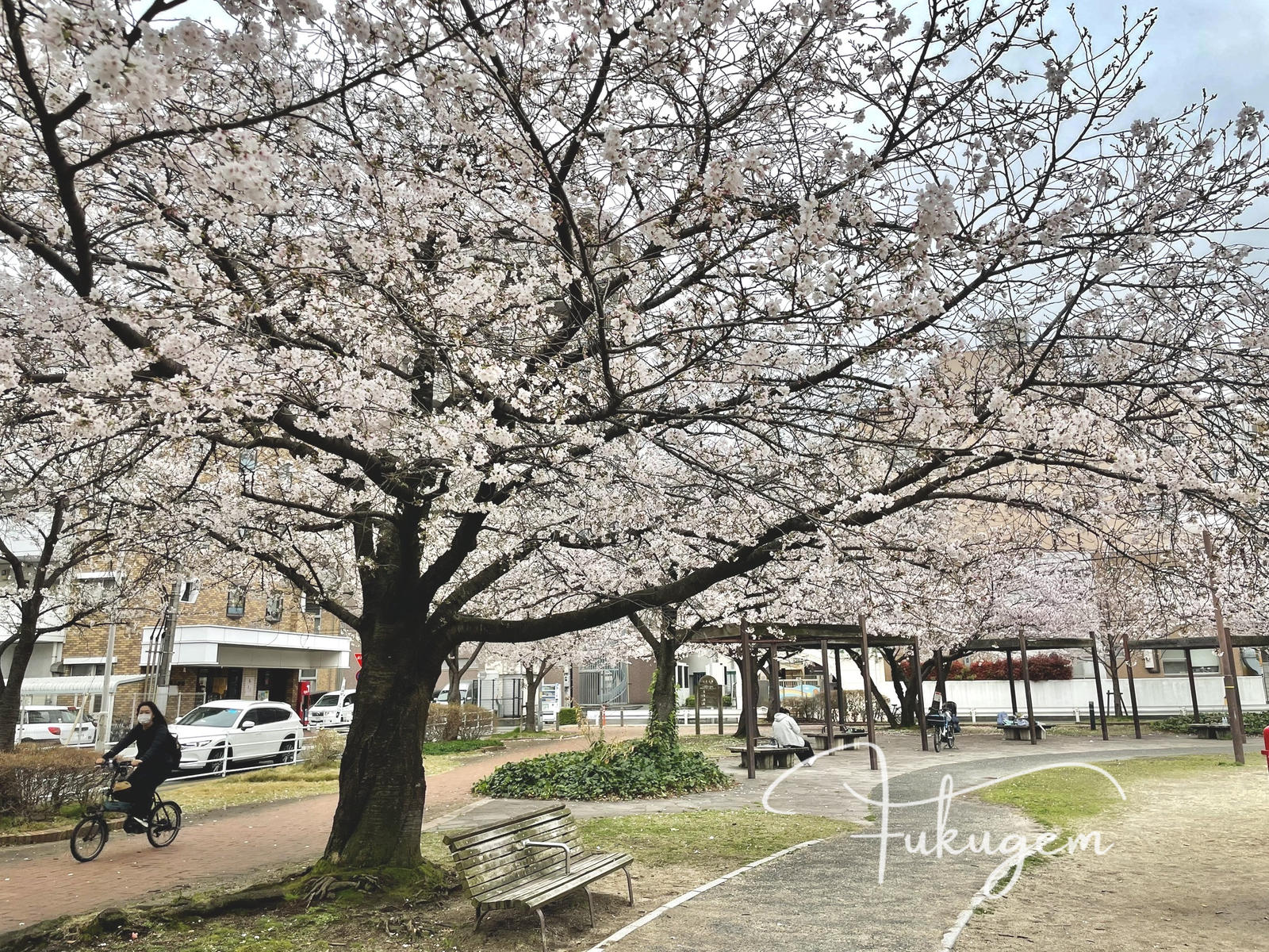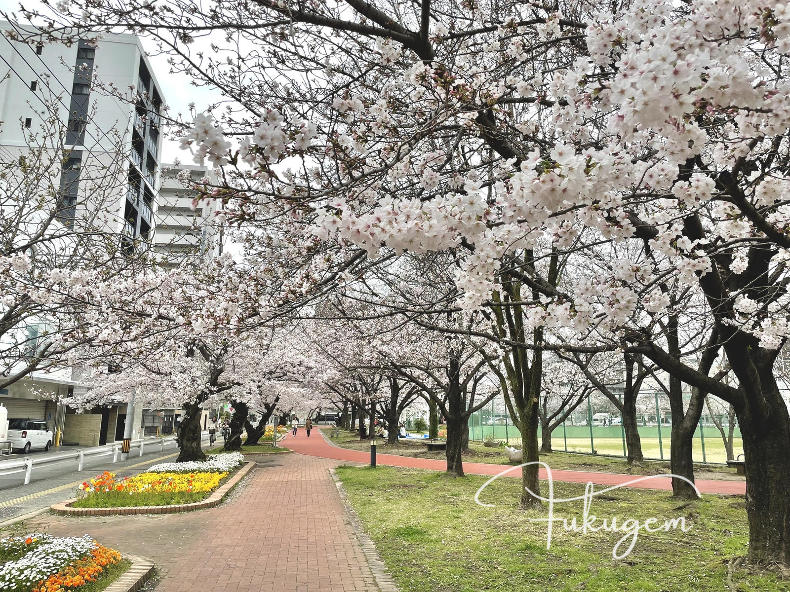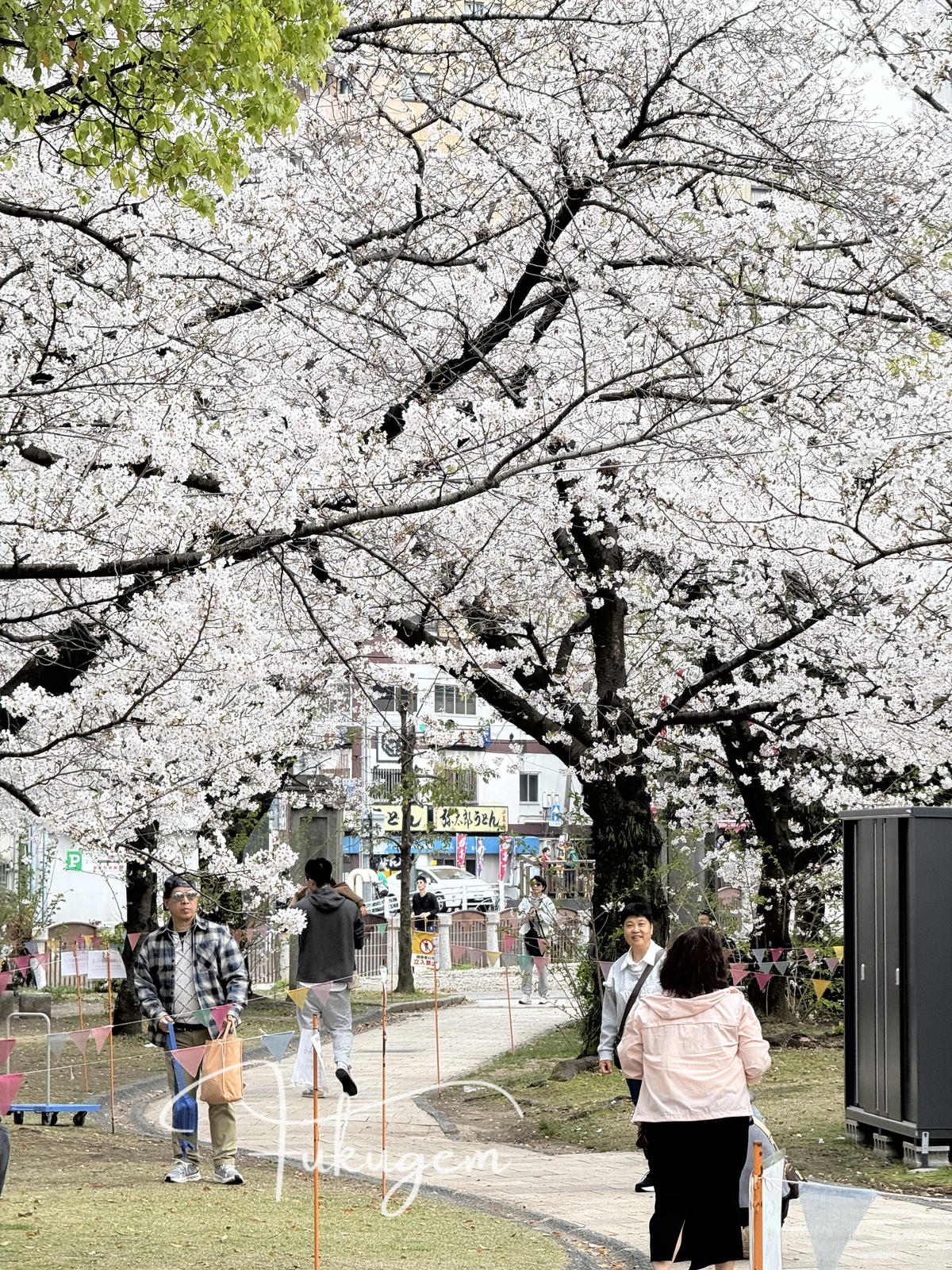 這裡規模較小,大約有數十棵櫻花集中在公園中心與兒童遊樂區旁,從博多車站筑紫口步行約 7~9 分鐘即可抵達