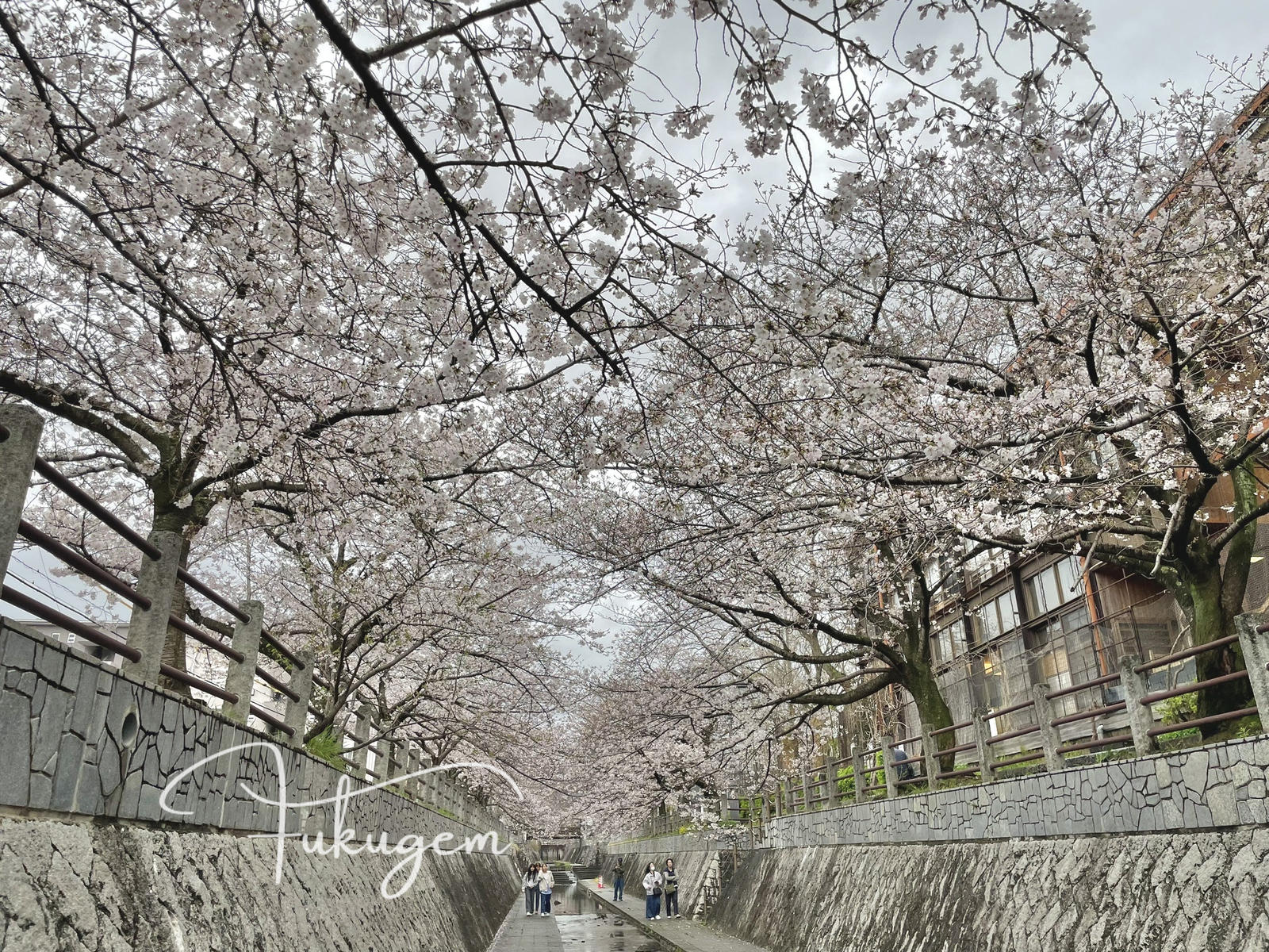 這是一條沿著小溪流伸展的步道,兩側種滿了上百棵櫻花,形成長約數百公尺的櫻之隧道。