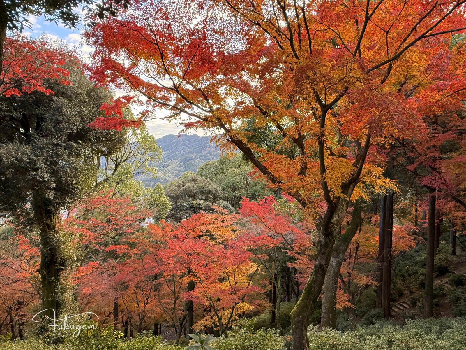 當秋風拂過,大興善寺的契山便換上紅妝,呈現出與春日截然不同的靜謐之美。紅葉季的最佳觀賞時間約在每年十一月中旬至十二月上旬。寺內的主要賞楓區域分佈於本堂周邊、庭園以及契園中腹,其中後山的契園最為壯觀,每一處都可見到楓葉與古寺建築相映成趣的優雅畫面。特別是陽光灑落時,金黃、橙紅、深紅的楓葉層次分明,搭配寺廟的古樸屋簷和石階,營造出一種獨特的日本秋日風情。楓樹分布於寺院腹地,建議沿既定階梯和步道參觀,契園需要付費入場,也須爬非常多階梯,體力上需要斟酌