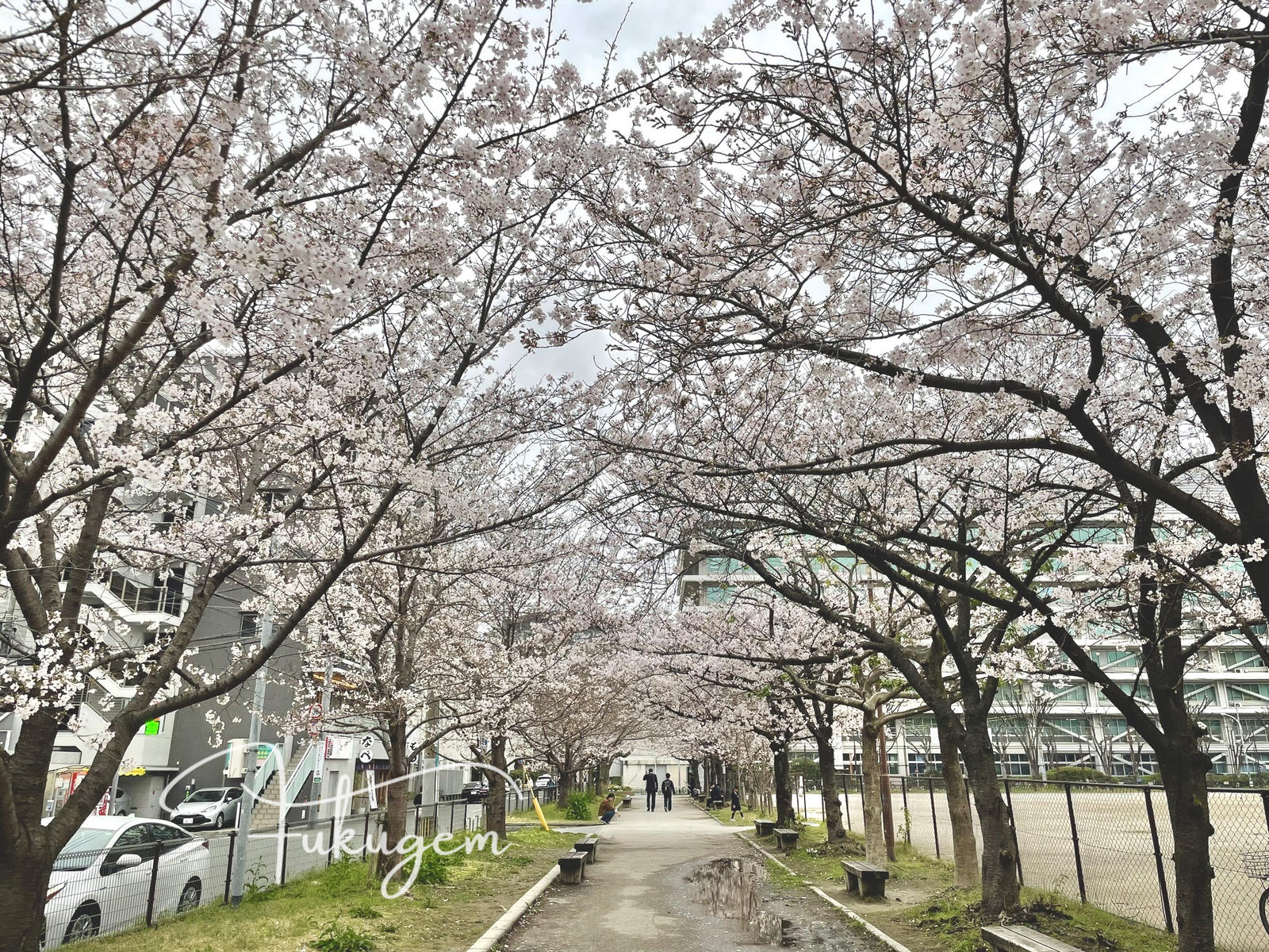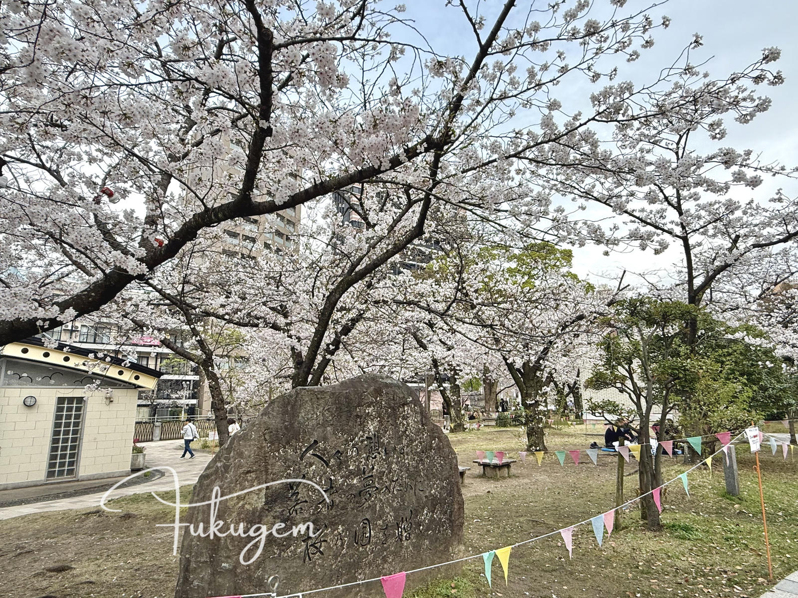 這裡規模較小,大約有數十棵櫻花集中在公園中心與兒童遊樂區旁,從博多車站筑紫口步行約 7~9 分鐘即可抵達