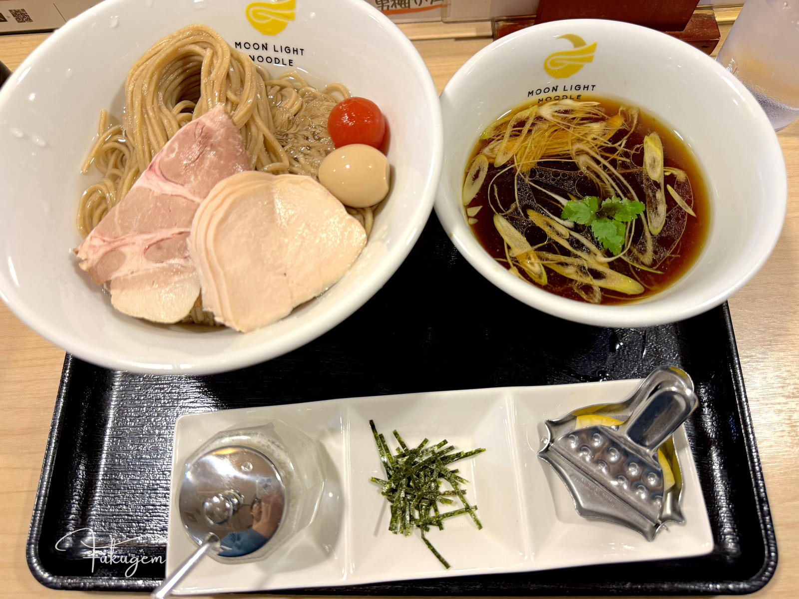 最後,依照看板建議擠上檸檬或撒上刻海苔轉換風味,那種由冷麵與熱湯交織出的溫差衝擊,加上低溫熟成的豚肩肉與雞胸叉燒,讓每一口都顯得精緻且毫無負擔。如果你想在福岡尋找一碗超越傳統、充滿現代感的極致麵點,這碗飽含職人靈魂的昆布水沾麵,絕對值得你專程前往。