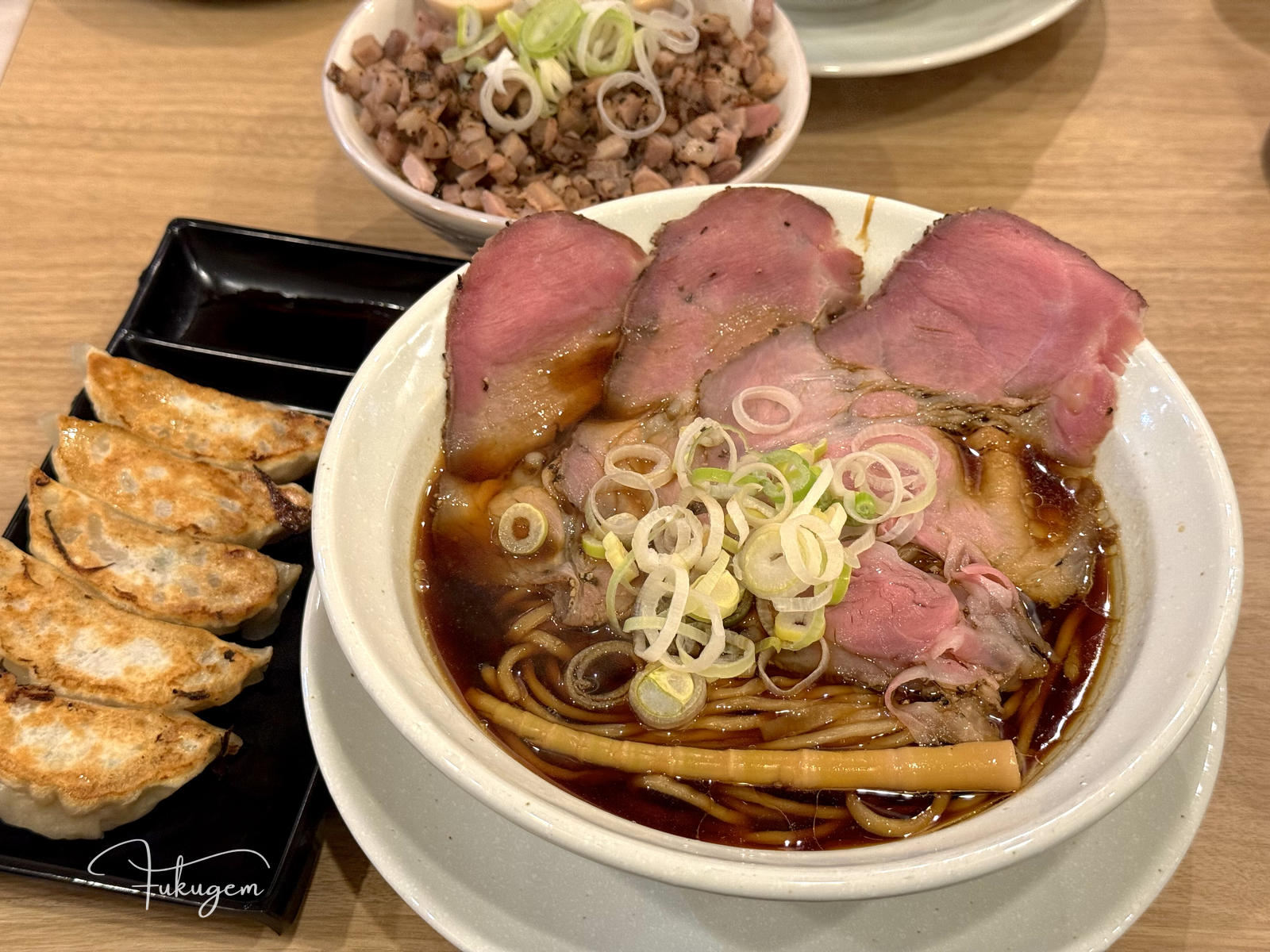 麵屋優光是從京都來的醬油拉麵名店,以其獨特的貝類湯底拉麵,在福岡拉麵界獨樹一格,提供從淡麗到濃厚的三種醬油風味選擇。這裡的湯頭以多種貝類熬煮而成,湯色清澈,味道鮮甜而充滿海洋的氣息,帶有自然的甘味與清爽的餘韻。無論哪種醬油拉麵的醇厚層次,都能在貝類湯底的襯托下展現其獨特魅力。麵條通常是中細直麵,口感滑順,能完美融入湯頭的鮮美。麵屋優光的拉麵風味清爽卻充滿層次,非常適合喜歡清淡鮮美、注重食材原味的饕客。另外極厚叉燒很入味、肉餃子香度和口感也不錯,都是個人非常推薦的品項!