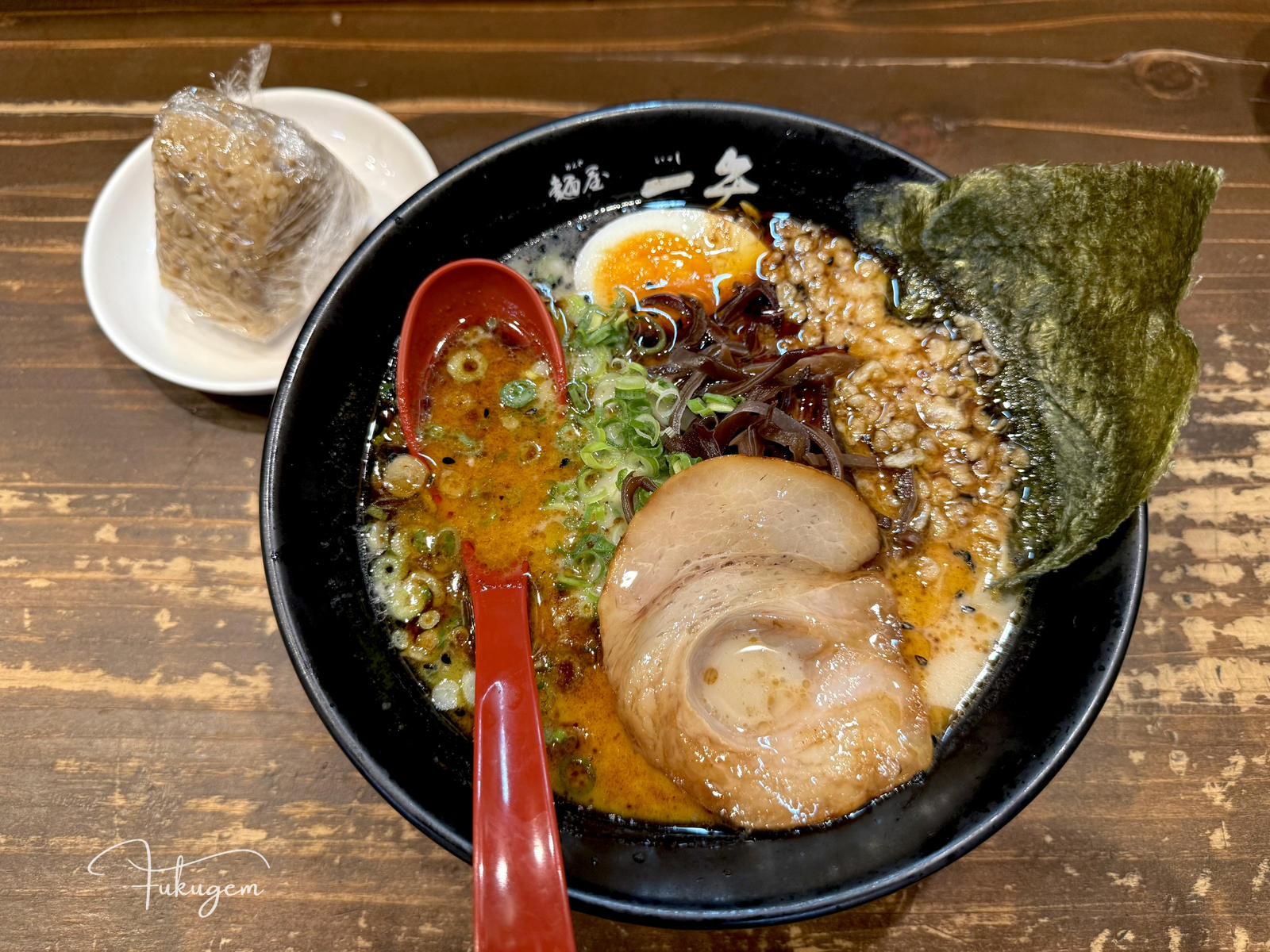 這間店我最愛的是那碗極具視覺與嗅覺衝擊的黑豚骨拉麵,算是博多拉麵流派的進化版。醇厚的豚骨湯頭淋上店主精心研發的自家製焦香蒜油,濃郁的蒜香撲鼻,卻意外地與溫潤的湯底達成微妙平衡,濃香而不膩。如果你在深夜的中洲漫步,想找尋一碗能溫潤脾胃、卻又帶著強烈個性與職人魂的拉麵,麵屋一矢絕對能為你的福岡之夜畫下最完美的句點。