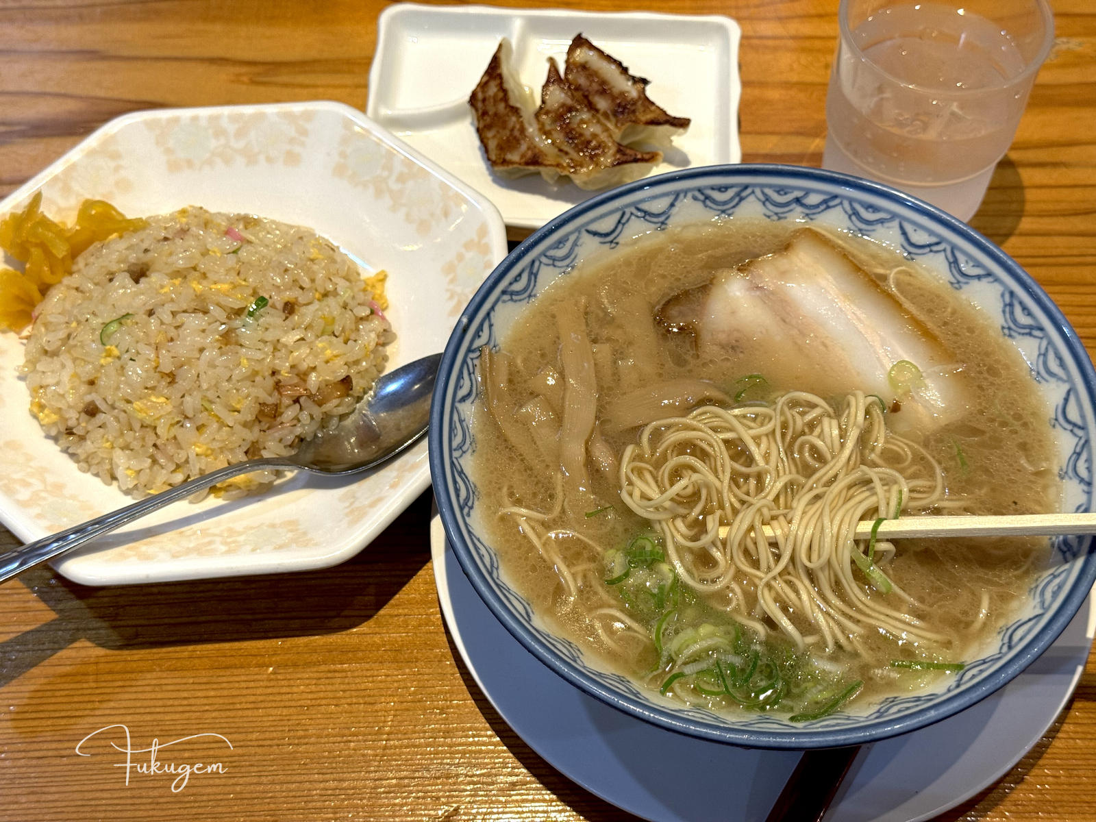 就像前面說的,這間店的靈魂不只是博多拉麵,搭配拉麵的副食更是一絕。從焦香四溢的煎餃到香氣逼人的鐵板炒飯,每一道都維持著高度的水準。尤其是鐵板炒飯,上桌後自己拌炒是很有趣的體驗,帶點鹹香鍋巴的口感,正是這間店能讓我不斷回訪的魅力所在。