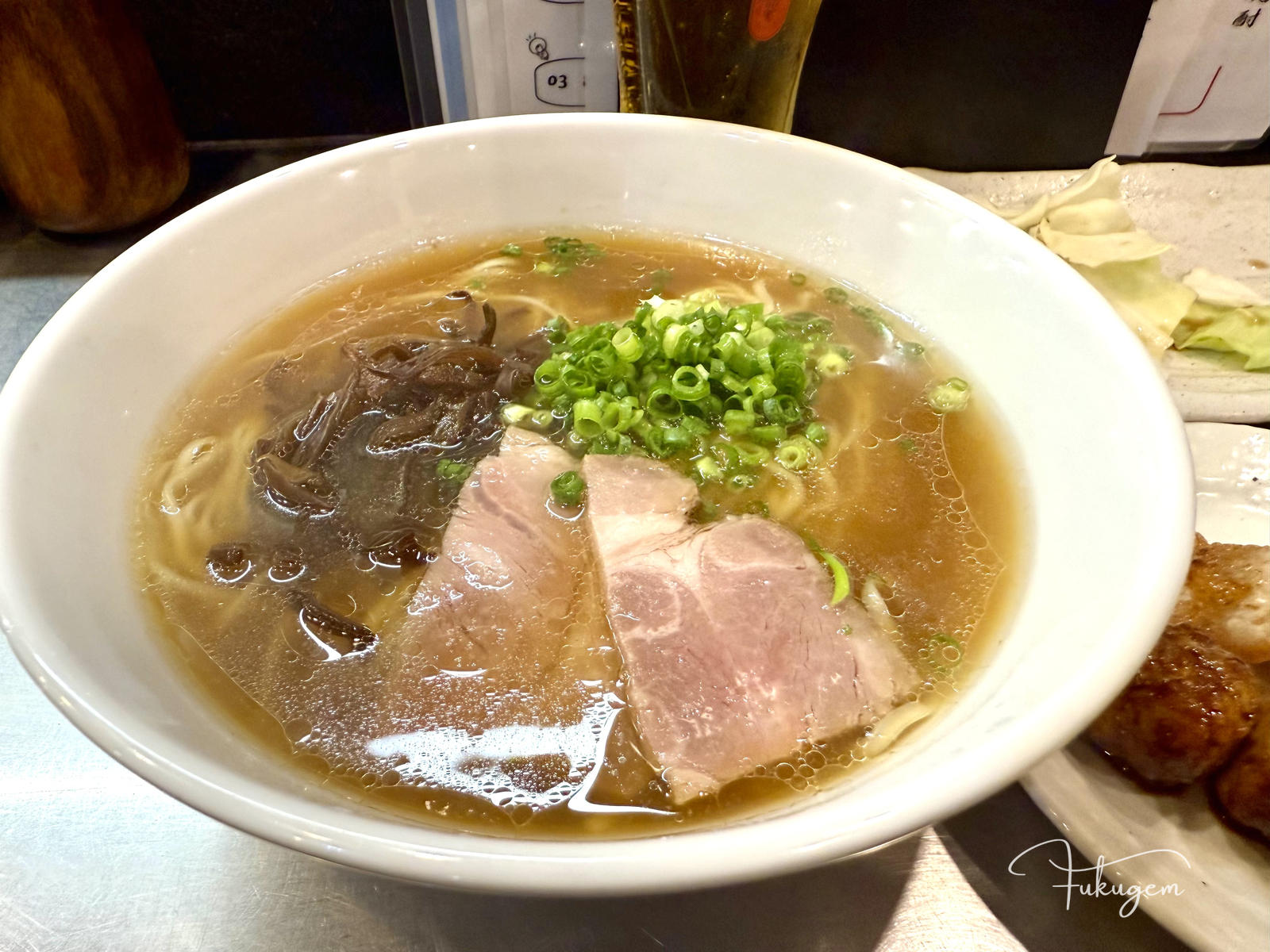 這碗麵本身就走清爽路線,但我個人的私房吃法是額外加點蔥白。蔥白的清脆與辛甜感,隨著熱氣滲入湯底後,能將湯頭的層次感進一步提升,讓每一口喝起來都更為清甜順口。這種澱粉與蔬菜的平衡搭配,讓海鳴在博多眾多硬核派系中,顯得格外清新療癒,是微醺之後最完美的結尾。